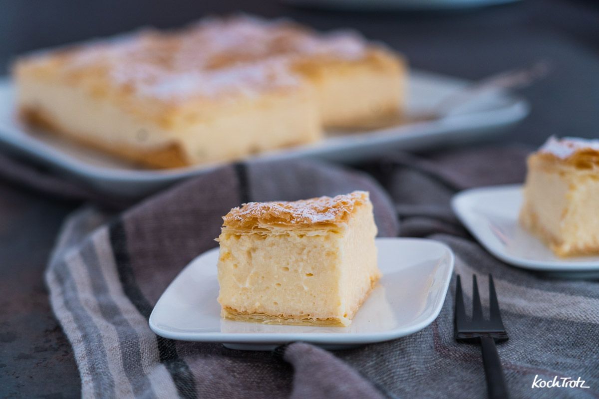 Připravte sýrovou vrstvu. Přesuňte sýr do mísy a změkčete ho mícháním mixérem. Přidejte mléko, cukr, vejce a žloutky a znovu promíchejte do hladka. Na závěr přidejte pudinkový prášek a máslo. Hmota by měla být velmi tekutá. Nalijte ji do formy na pečení. Formu vložte do trouby předehřáté na 170 stupňů Celsia a pečte 50 minut.